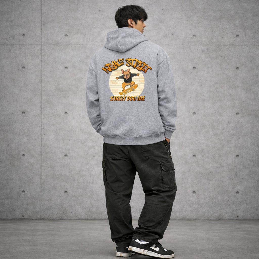 【 KRANZ STREET 】STREET DOG LIFE / 2-Way 刺繍&プリントパーカー(Unisex)