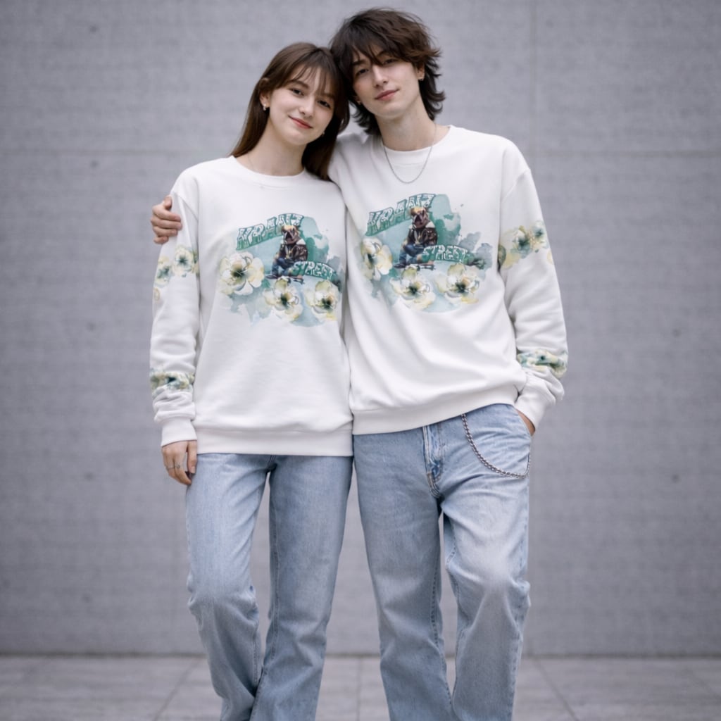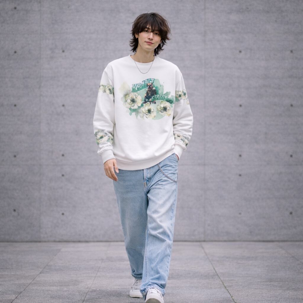 【KRANZ STREET】Bulldog & Flower デザインスウェット