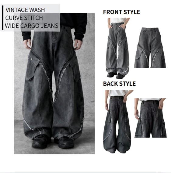 ヴィンテージウォッシュ ワイドカーゴジーンズ