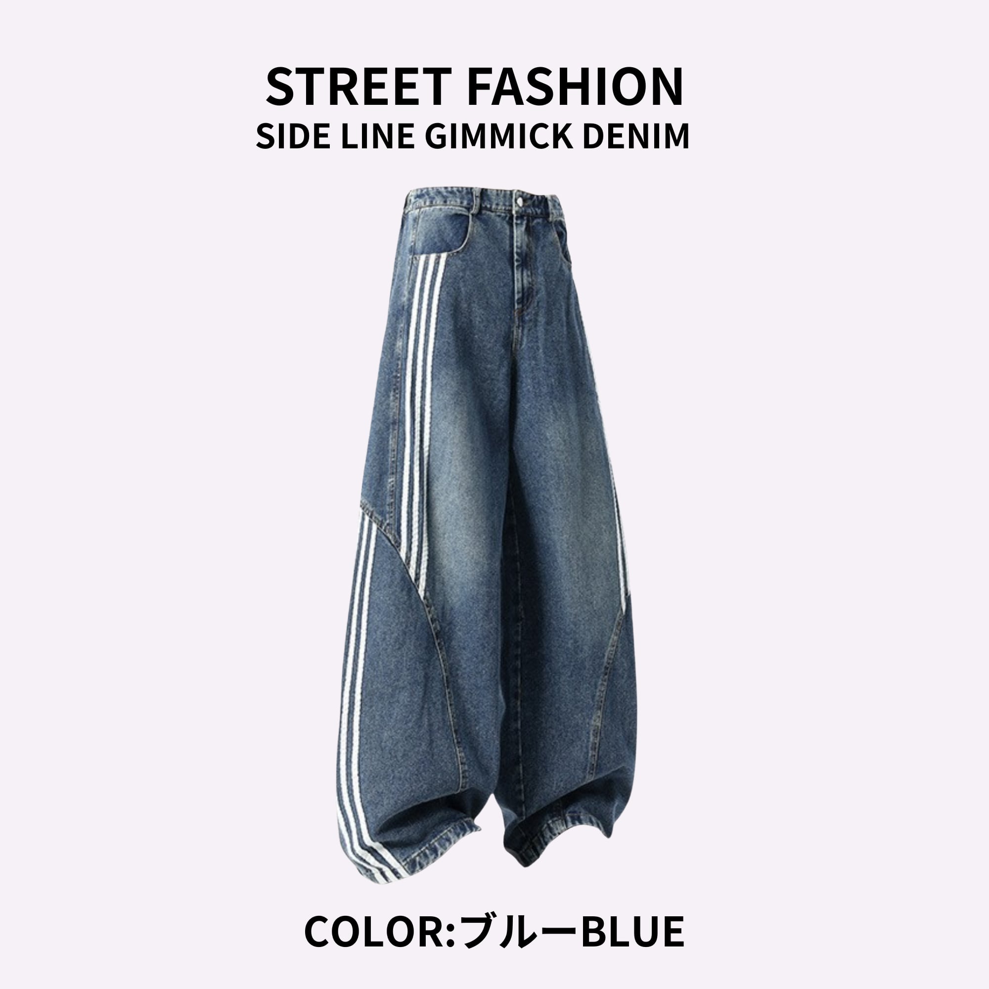 サイドライン ギミック ワイドストレートジーンズ(ブルー)|Y2K ハイストリート