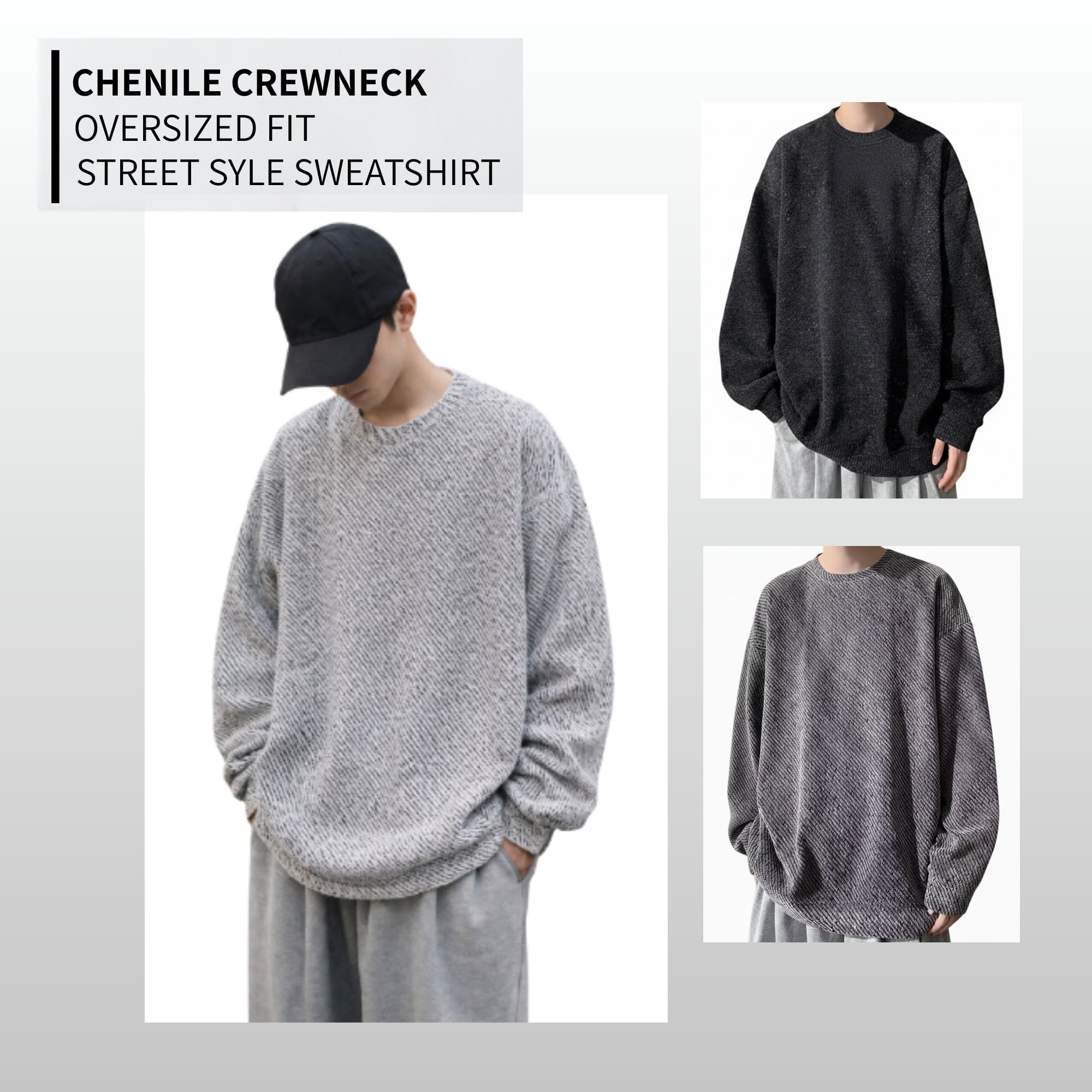 シェニール クルーネック ルーズスウェット(ストリートスタイル)