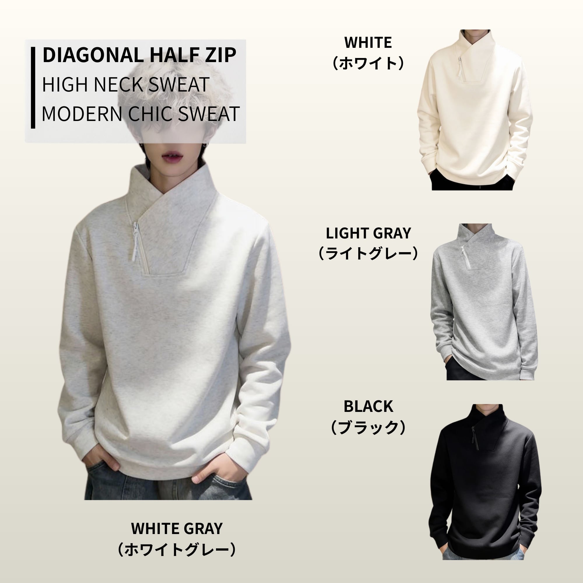 斜めジッパー ハーフジップスウェット|オーバーサイズ モードストリート